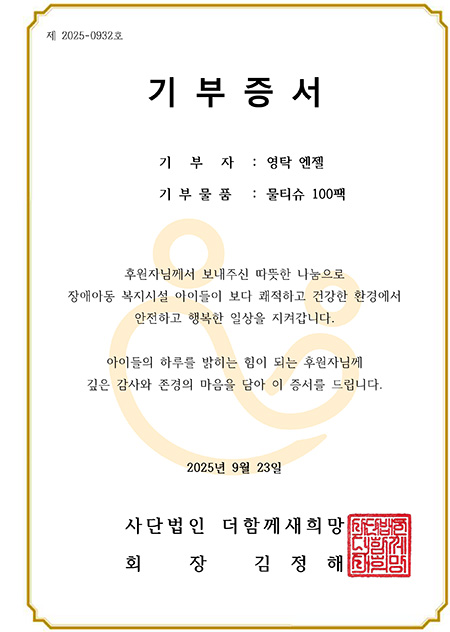 韓国の㈳もっと共に新希望は9月24日、ヨンタクのファンで構成されたヨンタクAngelによる寄付式を行なった。