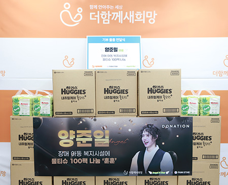 | ヤン・ジュニルのファンが障害児童福祉施設に、乳児用ウェットティッシュ100パックを寄付した。 |
