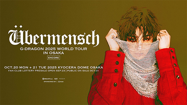「G-DRAGON 2025 WORLD TOUR [Übermensch] IN OSAKA : ENCORE」は、10月20日(月)、21日(火)に京セラドーム大阪にて開催される。