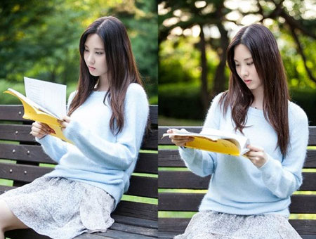 ソヒョンはここで、その清純な魅力をアピールしながら台本に集中している。